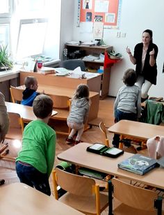 Dnes se byly děti podívat nejen za jejich budoucí paní učitelkou Alenkou a budoucími spolužáky, ale i v 1.třídě za paní učitelkou Petrou a loňskými předškoláčky. Podívaly se, jak to v první třídě vypadá a jak probíhá vyučovací hodina matematiky.