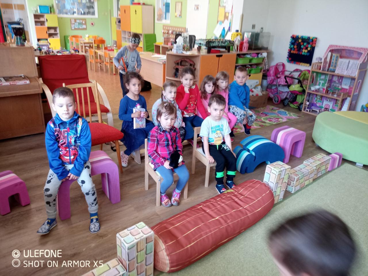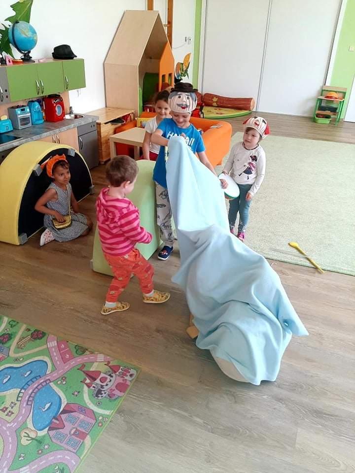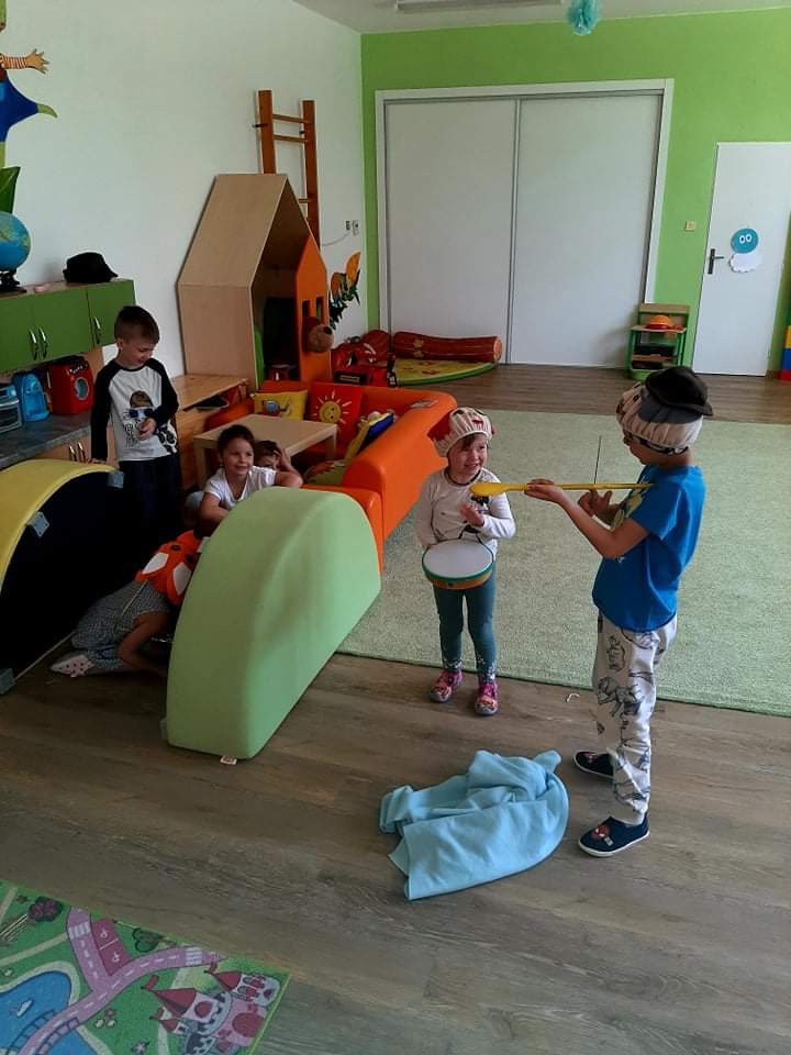 Tento týden byly pro děti připraveny ranní činnosti, pohybové i smyslové hry, jazyková chvilka, hádanky, výtvarná činnost a dramatizace k pohádce "O Budulínkovi".