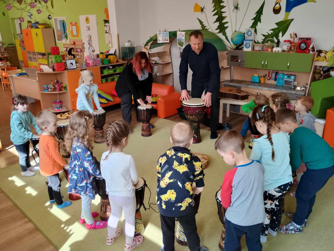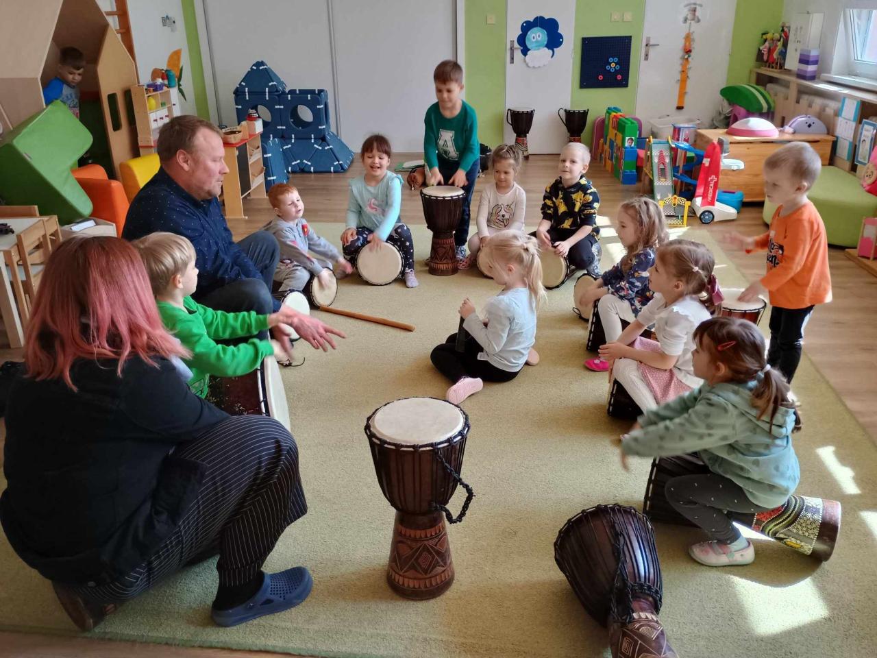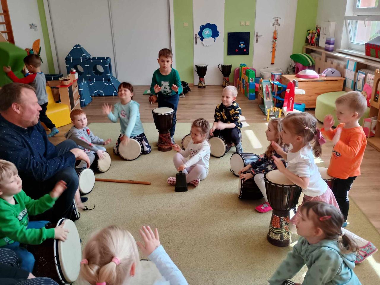 V pátek za námi přišel strejda Zdenda. Čekalo nás zpívání, tancování a hlavně bubnování, moc jsme si to užili.