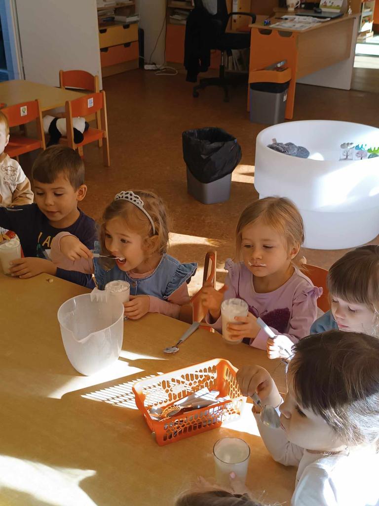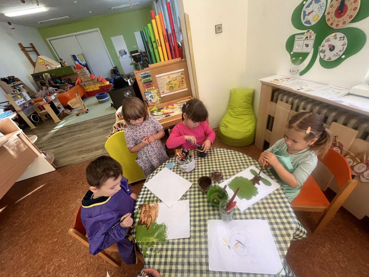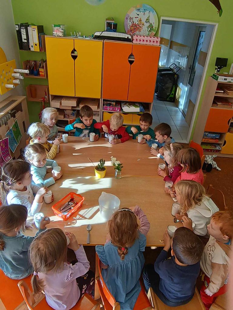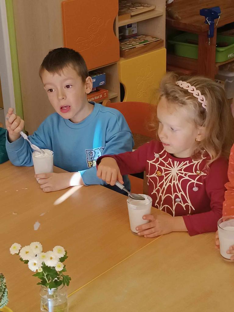 Ovoce bylo tématem tohoto týdne. Ovoce jsme poznávali smysly, vytvářeli jsme ovocné stromy, zapouštěli vodové barvy do klovatiny, hráli jsme různé pohybové hry a v pátek si umixovali ovocný koktejl.