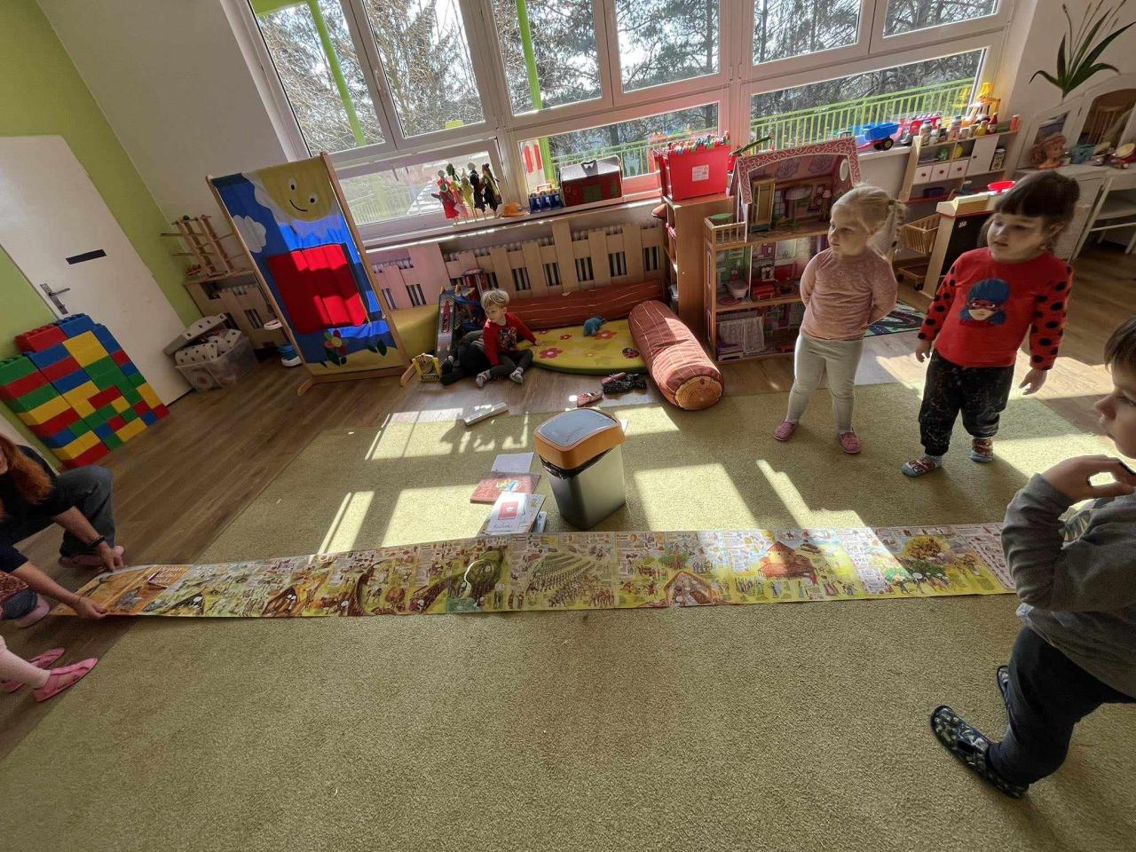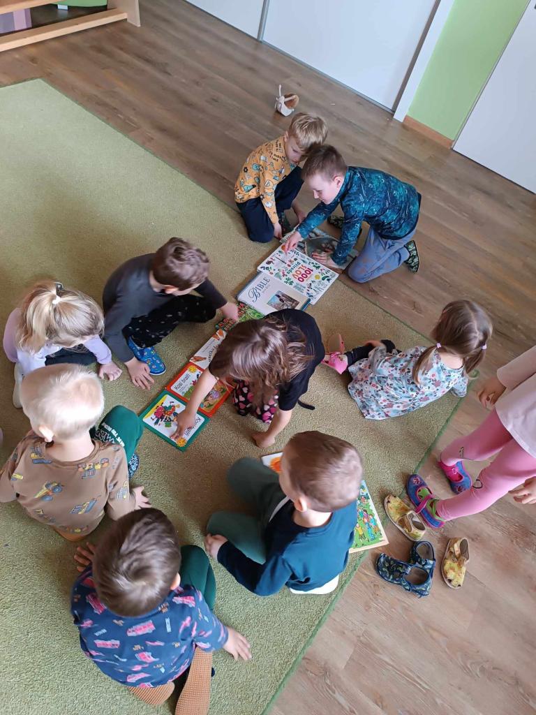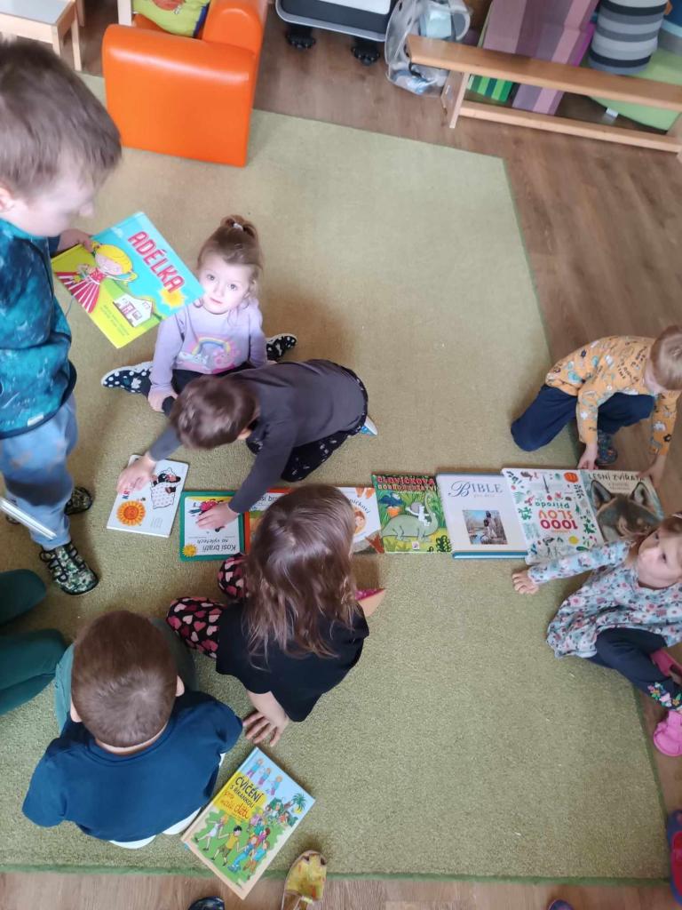 Březen, měsíc knihy, tak i my jsme si o knihách povídali. Zajímalo nás, z čeho jsou a jaký proces musí proběhnout, aby se ze stromu stala kniha.Tento týden se předškoláci podívali do osvětimanské školy a mladší děti si užily školku a hračky celé dopoledne bez nich.