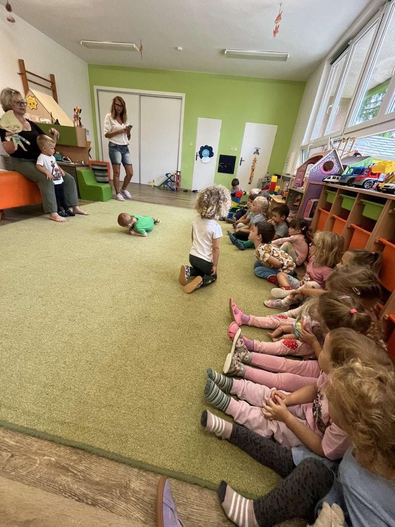 Tento týden jsme pokračovali v adaptaci nových dětí, tvořili jsme pravidla školky se skřítkem Vřesíkem. Učili se pěknému chování ke kamarádům, hráli jsme hry s padákem, tancovali, naučili se novou básničku, četli knížky a zahráli jsme si pohádku "Vřesík a jeho kamarádi".
