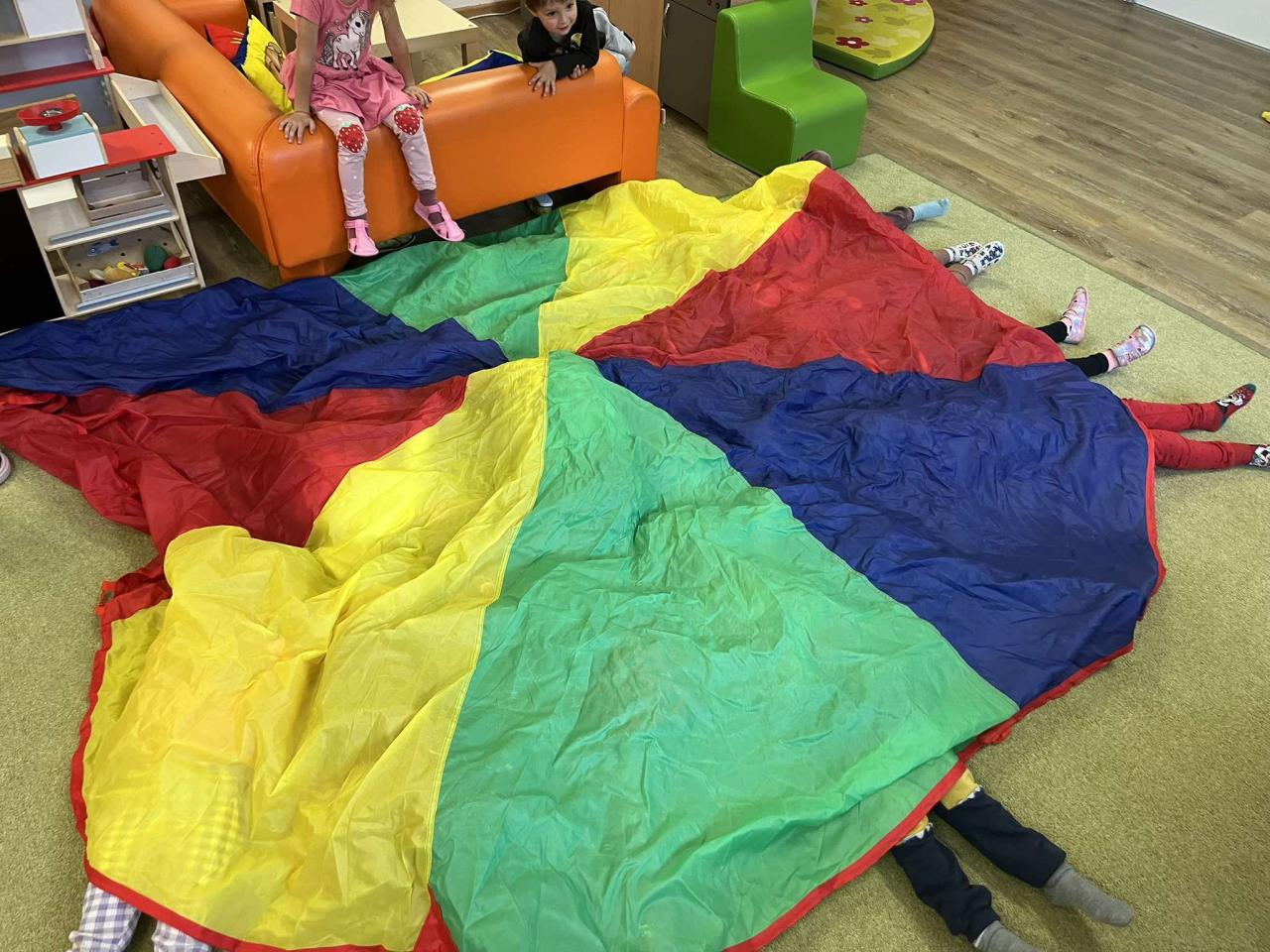 Hra s padákem, poznáváme kamarády podle bačkor